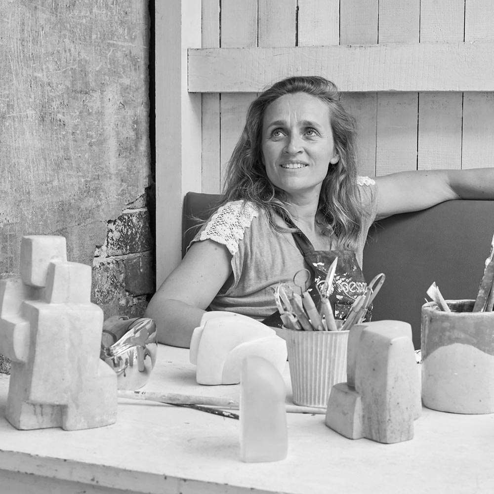Sophie Bocher has been sculpting for 20 years. Starting with a block of clay or plaster, she seeks harmony between abstraction and figuration, and translates human states into intimate and universal expressions. Finding a primitive form to return to an emotion that is expressed in the simplest and most authentic way possible. Sometimes curved, sometimes straight, the blocks intertwine and rub shoulders in the continuous search for a peaceful balance, often marked by gentleness. (Written following by Sophie Bocher : "Let us light our candles to illuminate our dreams").